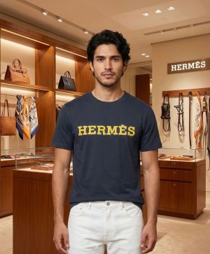 HERMES NAVY BLUE YELLOW PRINTED ROUND NECK OVERSIZED TSHIRT STORE ARTICLE
