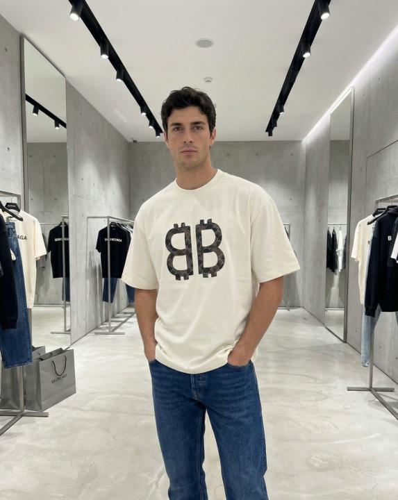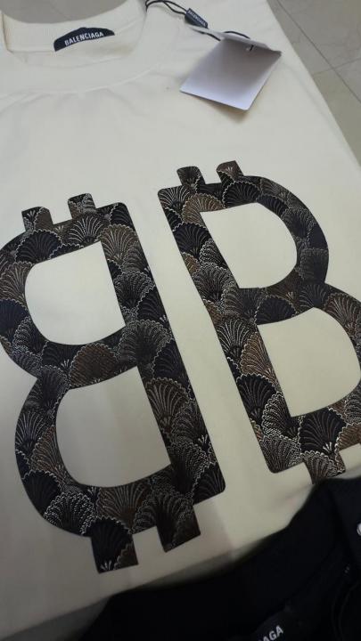 Balnciag_A Cream Black printed printed round neck oversized tshirt