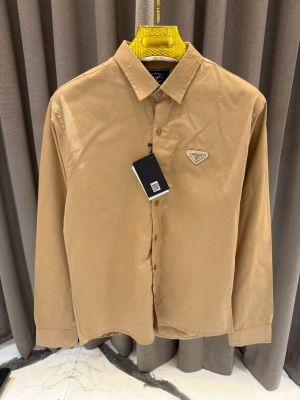 Prad_a Middle Chest Logo Full Sleeves Shirt Coffee
