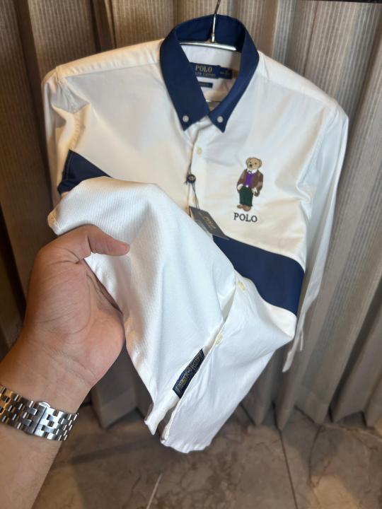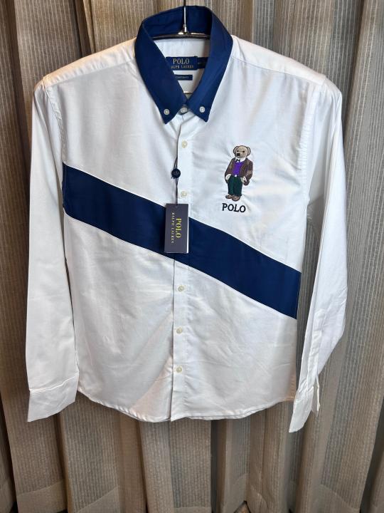 RALPH LAURE_N POLO WHITE NAVY PREMIUM TEDDY SHIRT